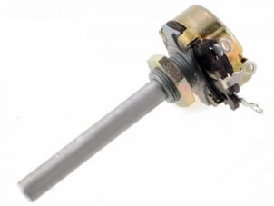 Potencjometr obrotowy osiowy o charakterystyce liniowej z możliwością montażu na obudowę.