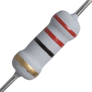 Rezystor metalizowany mocy, wyprowadzenia osiowe do montażu przewlekanego.