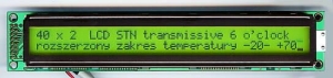 Alfanumeryczny wyświetlacz LCD o ilości znaków 40x2 i podświetleniem żółto - zielonym, wykonany w technologii STN positiv