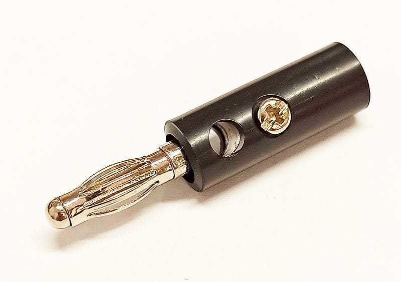 Wtyk bananowy z możliwością przykręcenia przewodu i gniazdem bananowym 4mm
