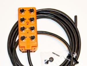 Koncentrator sygnałów umożliwiający podłączenie do sześciu czujników i przesyłanie ich danych przy pomocy pojedynczego przewodu czterożyłowego.