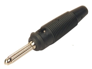 Wtyk bananowy przykręcany na przewód z gniazdem bananowym umożliwiający podłączenie kolejnego wtyku bananowego.