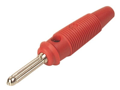 Wtyk bananowy przykręcany na przewód z gniazdem bananowym umożliwiający podłączenie kolejnego wtyku bananowego.