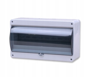 Natynkowa obudowa elektryczna w kolorze białym z dymną szybką z możliwością montażu wyłącznika nadprądowego, wyłącznika różnicowego.