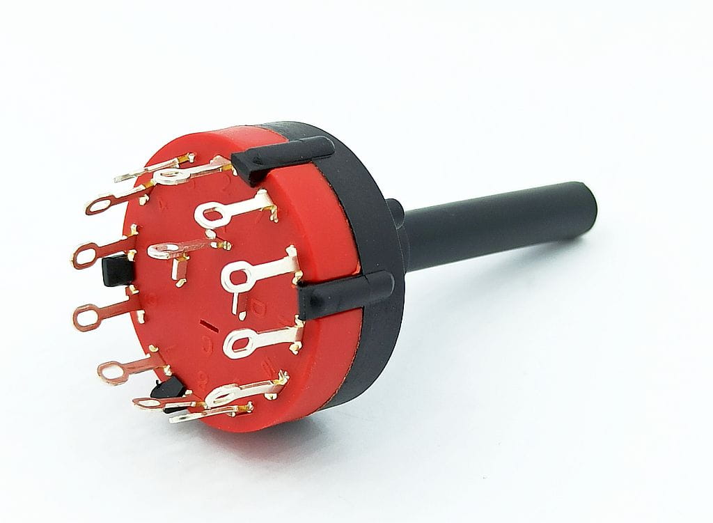Przełącznik obrotowy z możliwością przykręcenia do obudowy. Ilość przełączanych torów wejściowych 1, ilość pozycji przełącznika 12.