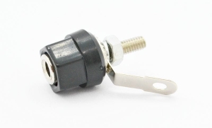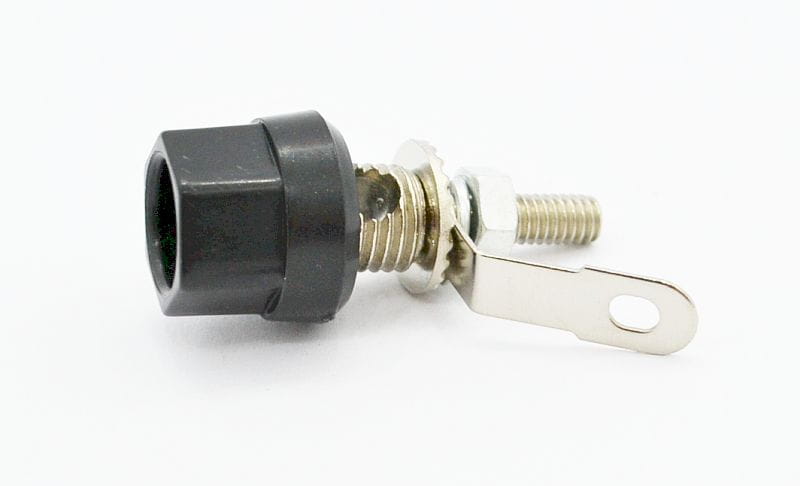 Gniazdo bananowe przykręcane na panel, montaż przewodu lutowany