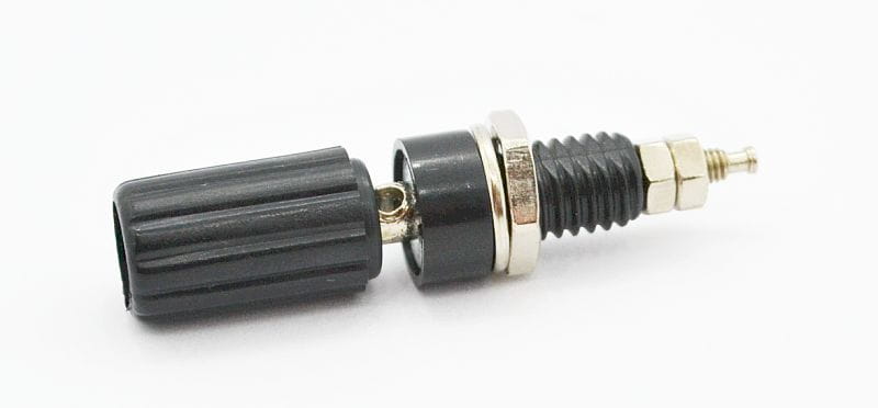 Gniazdo bananowe przykręcane na panel, montaż przewodu lutowany