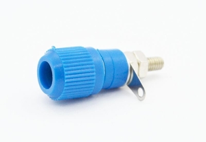 Gniazdo bananowe przykręcane na panel, montaż przewodu lutowany