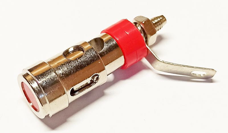 Gniazdo bananowe złote montaż ze sprężyną czerwony