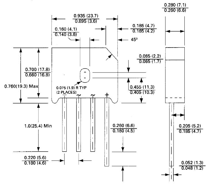 Mostek prostowniczy jednofazowy do montażu przewlekanego