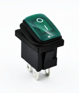 KCD1-G przełącznik kołyskowy hermetyczny podświetlany zielony ON-OFF; 6A / 250V