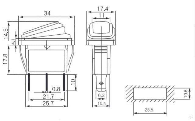 KCD3-BU przełącznik kołyskowy hermetyczny podświetlany niebieski średni ON-OFF; 16A / 250V