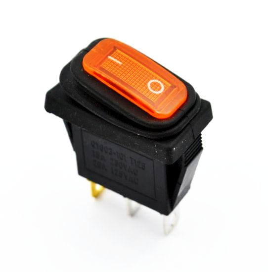 Przełącznik kołyskowy prostokątny średni jednoobwodowy ON-OFF, hermetyczny podświetlany, kolor podświetlenia żółty (230Vac)