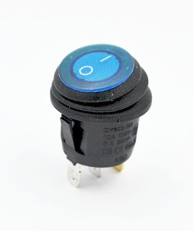Przełącznik kołyskowy jednoobwodowy okrągły ON-OFF, hermetyczny podświetlany, kolor podświetlenia niebieskie (230Vac)