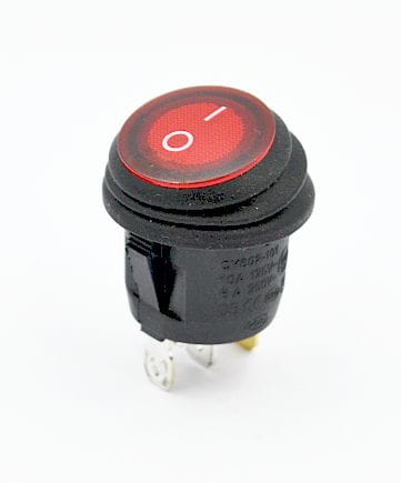 Przełącznik kołyskowy jednoobwodowy okrągły ON-OFF, hermetyczny podświetlany, kolor podświetlenia czerwone (230Vac)