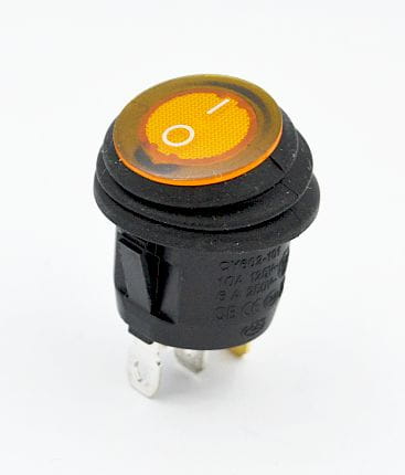 Przełącznik kołyskowy jednoobwodowy okrągły ON-OFF, hermetyczny podświetlany, kolor podświetlenia żółty (230Vac)