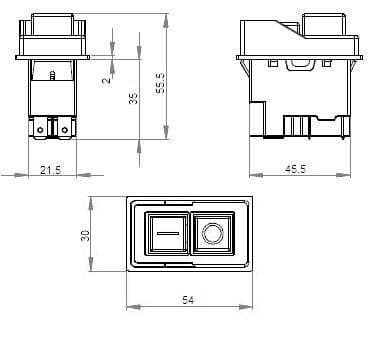 otwór montażowy 46x22mm