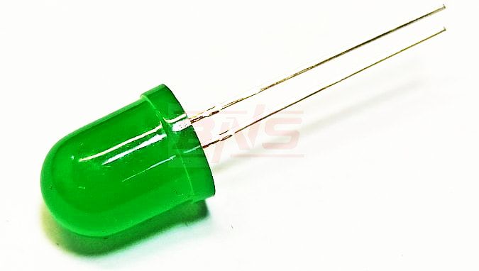 Dioda LED o średnicy 10mm, kolorze świecenia zielonym.