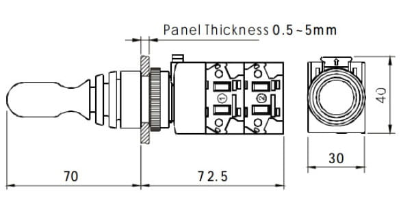 | konfiguracja styków | 2x NO - OFF - 2x ON |