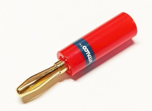 LAW24 wtyk bananowy montowany na przewód złoty plastik HQczerwony