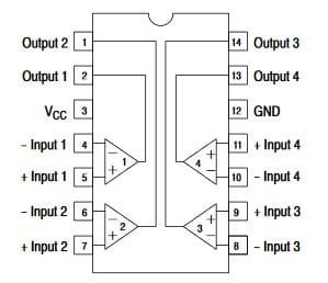 Układ poczwórnego komparatora z wyjściem typu otwarty kolektor