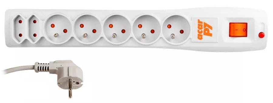 Przedłużacz elektryczny z zabezpieczeniem przepięciowym i podświetlanym wyłącznikiem.