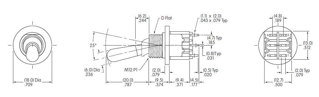 M2023WBG01 przełącznik dźwigniowy DPDT; ON-OFF-ON