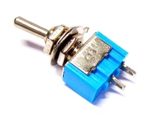 Przełącznik dźwigniowy montowany na panel. Wyprowadzenia lutowane, sposób przełączania ON-OFF