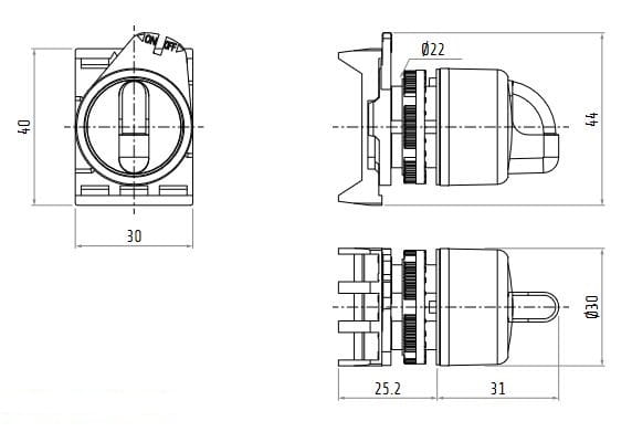 Przełącznik panelowy obrotowy z krótkim uchwytem 2-pozycyjny, kolor czarny