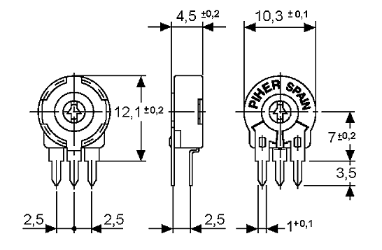 Potencjometr montażowy jednoobrotowy do montażu przewlekanego.