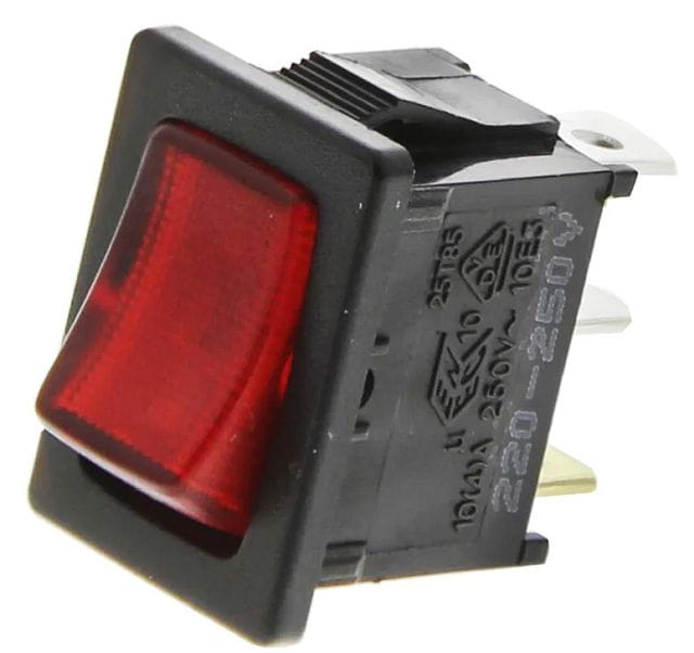 Przełącznik kołyskowy podświetlany 230V, czerwony stabilny ON-OFF