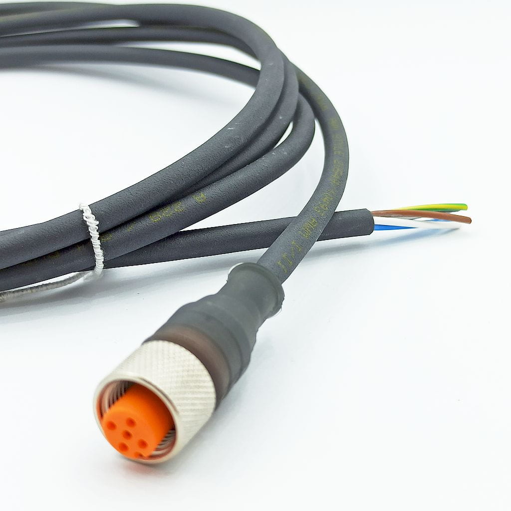 Złącze przemysłowe RKT 5-225/2M, 5 pin żeńskiej. Wykorzystywane w automatyce podłączenia czujników zbliżeniowych, optycznych. Złącze RKT 5-225/2M zakończone jest przewodem o długości 2m.