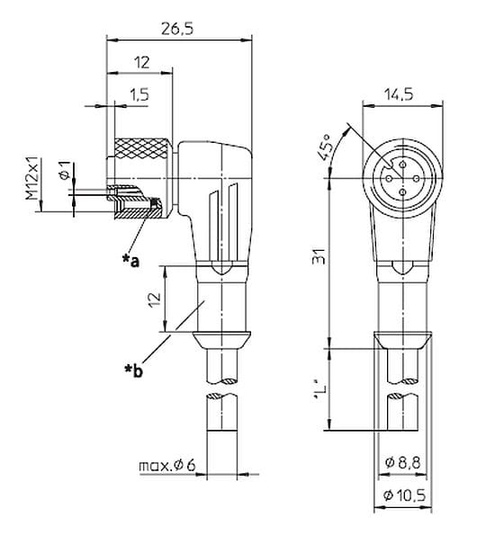 | rodzaj złącza | żeńskie kątowe |