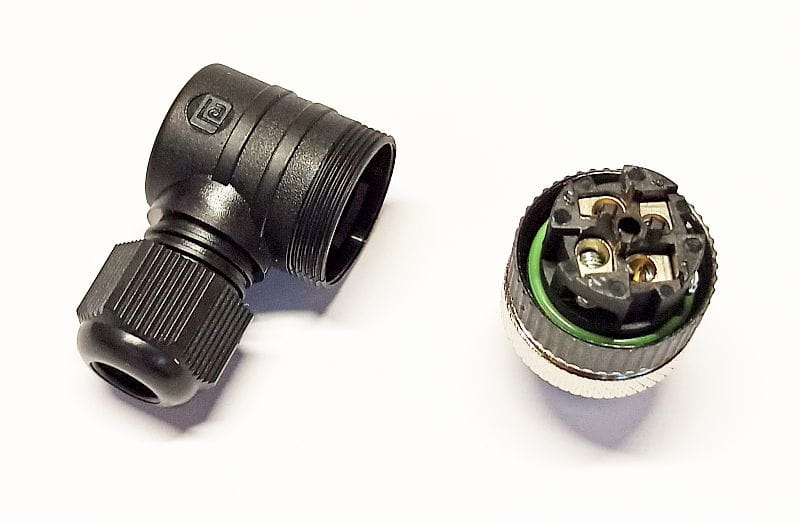 RSCW4/7 złącze przemysłowe męskie, kątowe seria M12 do samodzielnego montażu. Wykorzystywane w automatyce przemysłowej do połączenia czujników zbliżeniowych, elementów wykonawczych z okablowaniem.