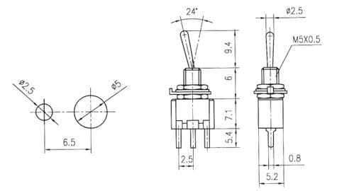 | typ przełącznika | stabilny ON-ON |