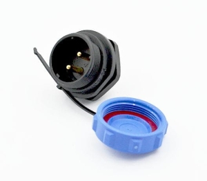 Wtyk okrągły przykręcany na panel przy pomocy nakrętki, ilość styków 2 męskie