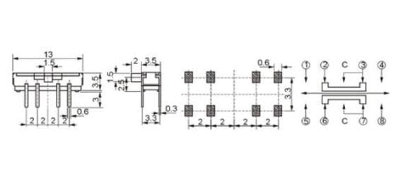 Przełącznik suwakowy 3-pozycyjny, lutowany PCB