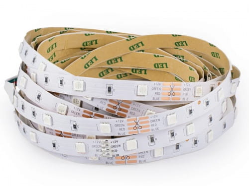 Taśma LED typu RGB umożliwiająca odrębne sterowanie trzema kolorami tj: czerwony, zielony, niebieski. Za pomocą sterowników RGB możliwe jest stworzenie dowolnej barwy światła od pojedynczego koloru aż po kolor biały.