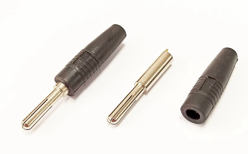 Wtyk bananowy gumowy, czarny, lutowany na przewód