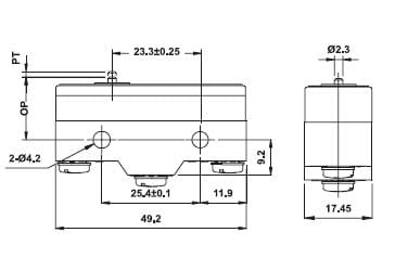 Mikroprzełącznik krańcowy z trzpieniem, styk NO - NC, wspólny pin