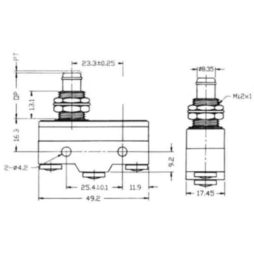 Mikroprzełącznik krańcowy zakończony trzpieniem styki NO - NC, wspólny pin